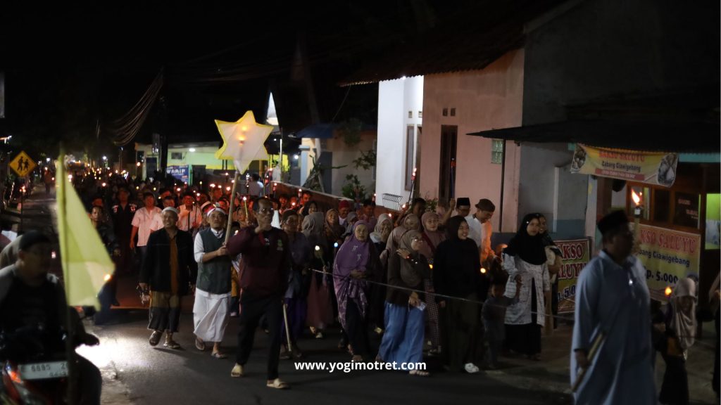 Sebagai bentuk syiar Islam dan semangat menyambut tahun baru, warga menggelar pawai obor keliling desa. Peserta dari berbagai kalangan usia membawa obor menyala sambil melantunkan shalawat dan takbir. Pawai ini tidak hanya menyemarakkan suasana, tetapi juga mempererat tali silaturahmi antarwarga.